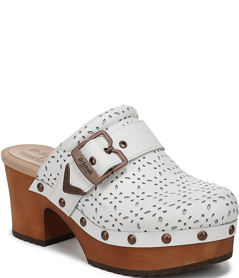 Dr. Scholl's Original Ranch Perforated Leather Buckle Strap Platform Clogs