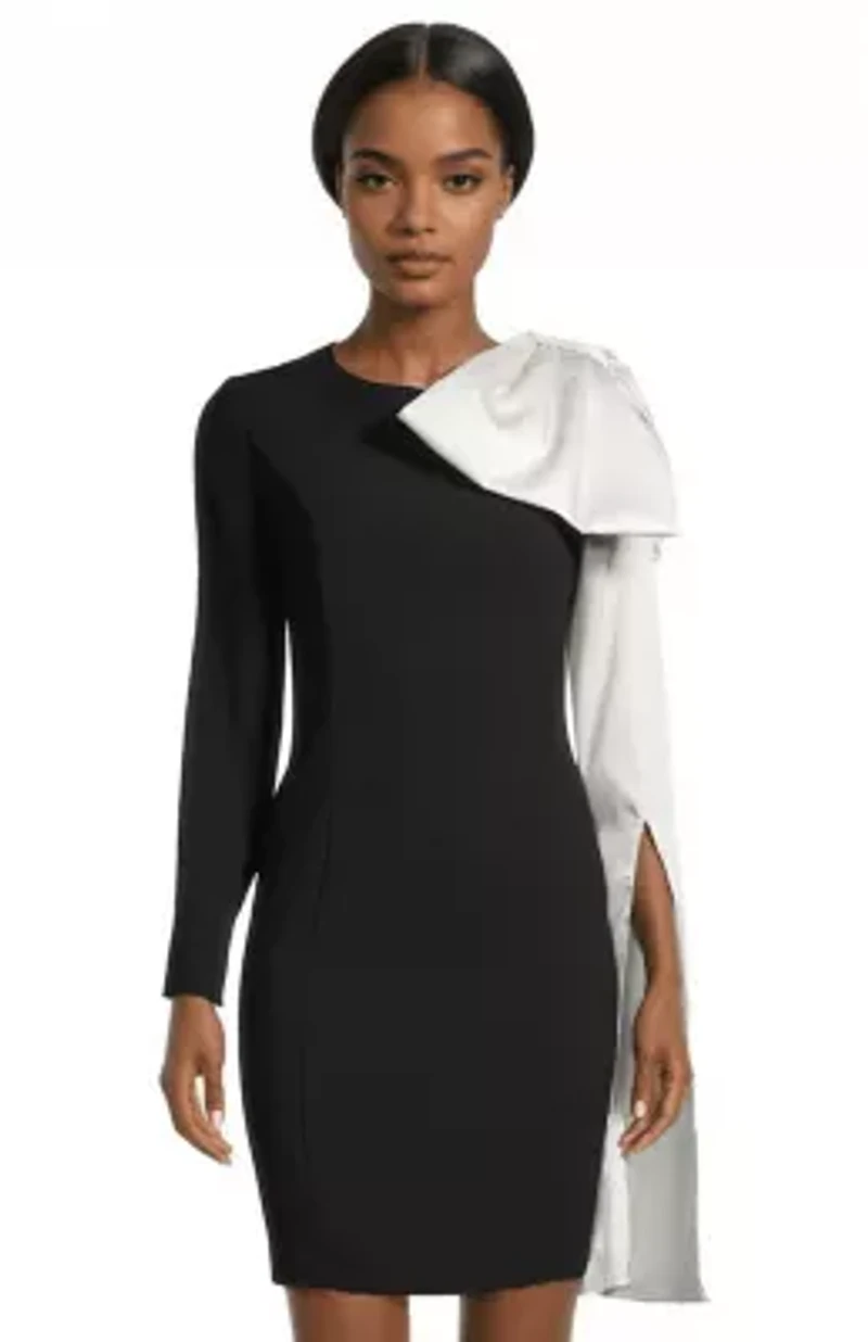 Dramatic Satin Bow Dress Zip closure Boat neck Long sleeve CHINA Imported Product Specifications 38" Material & Care 100%Polyester Dry clean only