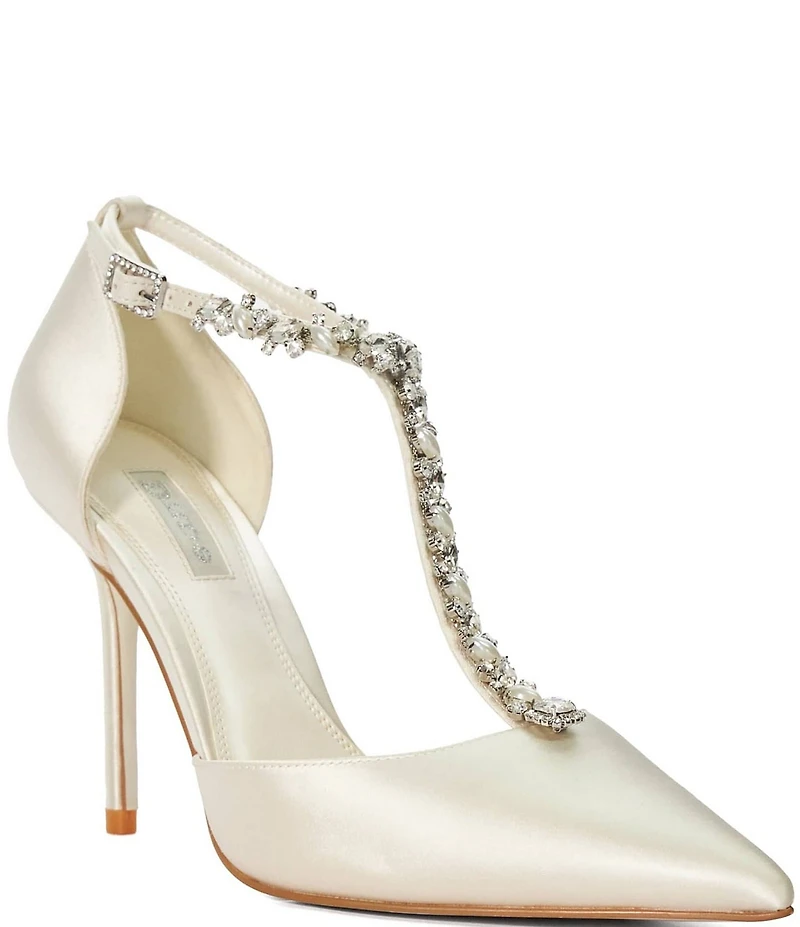 Dune London Devotional Jeweled T-Strap Bridal Pumps
