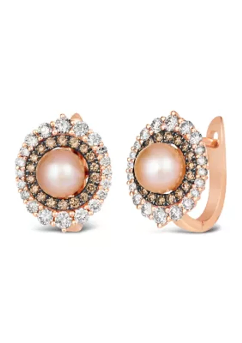 Earrings featuring Strawberry Pearls®, 3/4 ct. t.w. Nude Diamonds™, 1/3 ct. t.w. Chocolate Diamonds® set in 14K Strawberry Gold®
