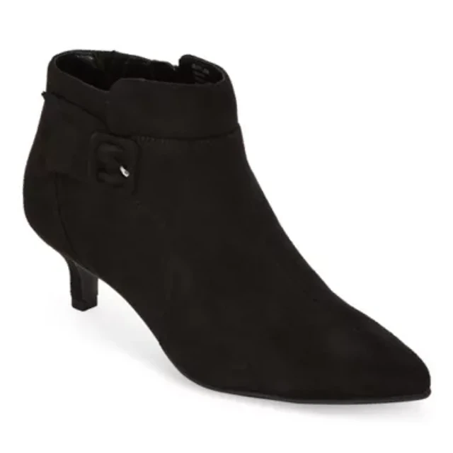 These east 5th Una booties for women have a chic pointed-toe and kitten heel design that will elevate your looks. Made from soft faux suede, this pair has zip closures and memory foam cushioning. Wear it with a LBD or pants and a blouse.