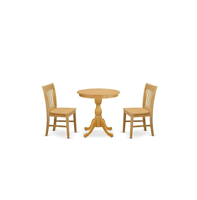 East West Furniture 3-Pc Kitchen Table Set - 2 Dining Room Chairs and 1 Modern Dining Table (Oak Finish)