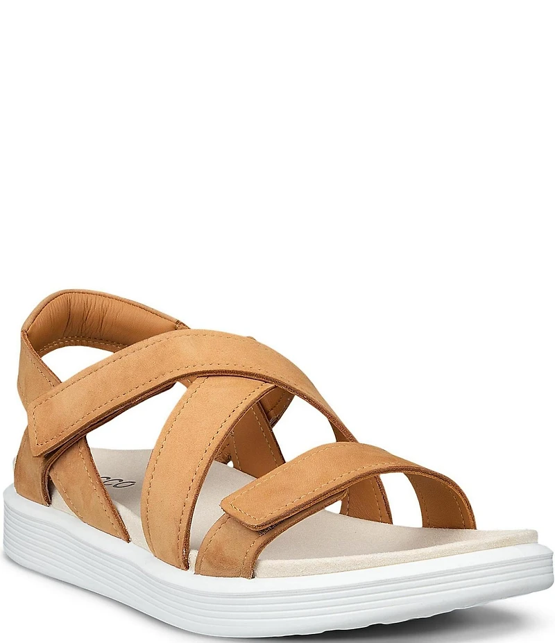 From ECCO), the Women's Soft Cross Strap Suede Sandals feature: Crafted from premium ECCO suede Two adjustable hook-and-loop closures Leather lining Leather/rubber outsole Imported.