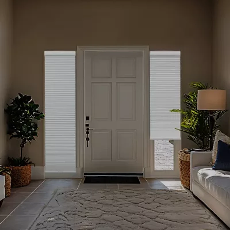 Create a bold statement of privacy and style with our 1.5" Blackout Cellular Shade for sidelights-engineered with a luxuriously soft, high-quality fabric that completely blocks light while enhancing your home's energy efficiency. The blackout design ensures total privacy and darkness, ideal for creating a peaceful, distraction-free environment in entryways or side windows. Its sleek 1.5" pleats offer a modern, tailored look, while the cellular structure traps air to help regulate temperature and reduce energy costs. Perfectly sized for narrow windows, this shade combines premium comfort with purposeful design-keeping light out, keeping life in, and welcoming every moment with quiet confidence.