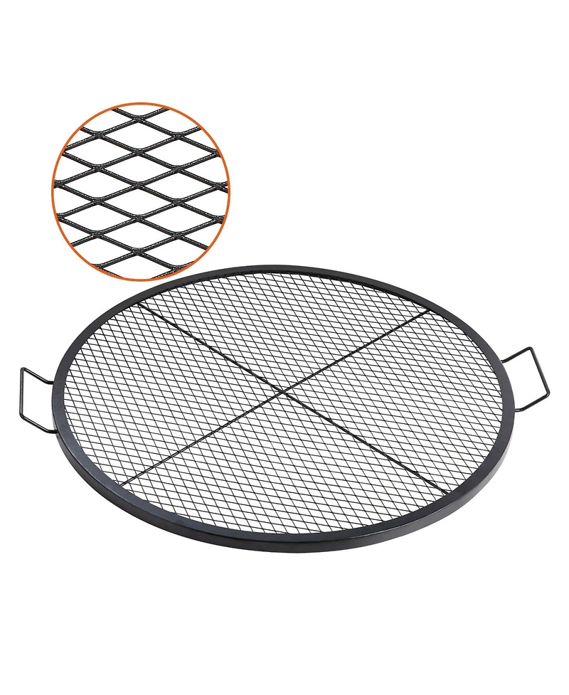 Elevate your campfire cooking with the X-Marks 36" Fire Pit Grill Grate, designed for even heating and effortless outdoor grilling. Crafted from premium Q235 heavy-duty steel with a high-temperature, food-grade, rust-resistant coating, this round cooking grate withstands up to 572 / 300 without warping or cracking. The large 36-inch surface offers ample space to cook for up to 8 people, while the high-density diamond mesh keeps small foods from falling through and ensures uniform heat distribution. A built-in handle and compact, 12 lb design make it easy to carry, store in your trunk, and set up quickly for camping, hiking, picnics, or backyard gatherings.