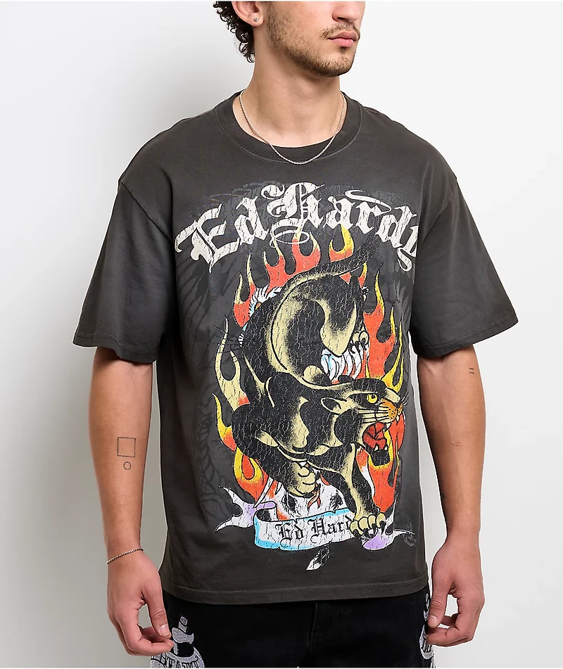 Ed Hardy Panther Flames Sunfade Grey T-Shirt