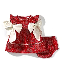 From Edgehill Collection, this dress features: All-over bandana print Round neckline Sleeveless Tie bow details on the side Button back closure Diaper cover Cotton Machine wash/tumble dry Imported.