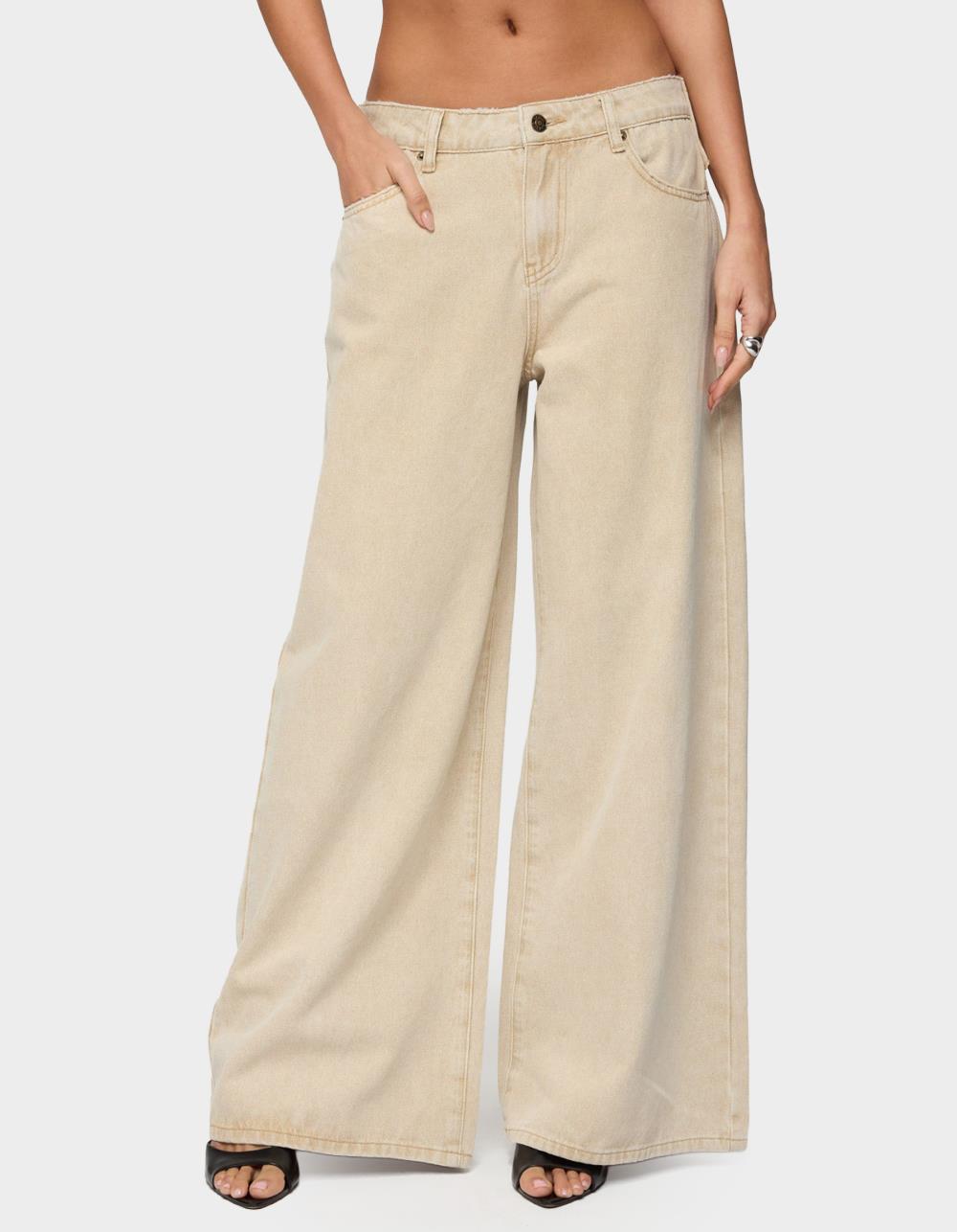 EDIKTED Buttoned Belt Low Rise Baggy Jeans - BEIGE