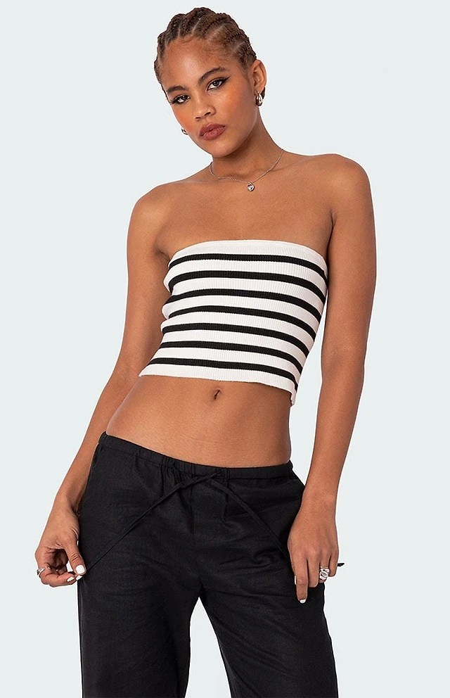 EDIKTED Rena Ribbed Peplum Tube Top - PINK