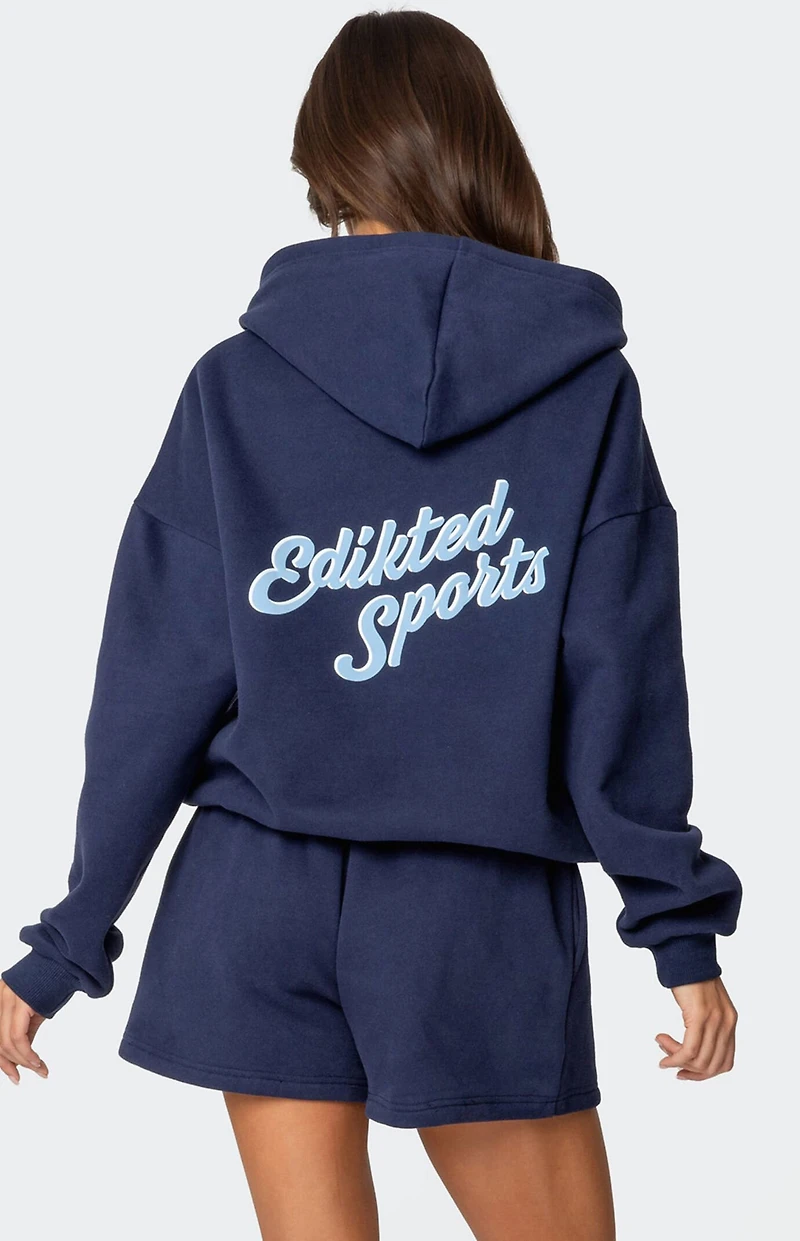 Reach your ultimate level of coziness, while still feeling on-trend with this perfect So Sporty Hoodie from Edikted. Pair it with its matching sweat shorts to complete the look.