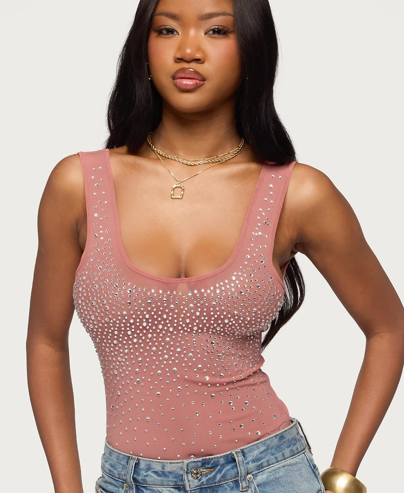 Edikted Women's Angelita Rhinestone Sheer Mesh Bodysuit