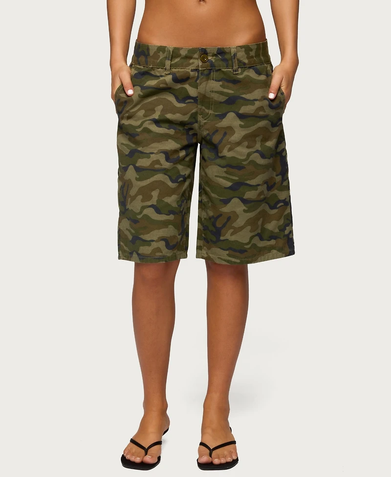 Edikted Women's Camo Denim Low Rise Bermuda Shorts
