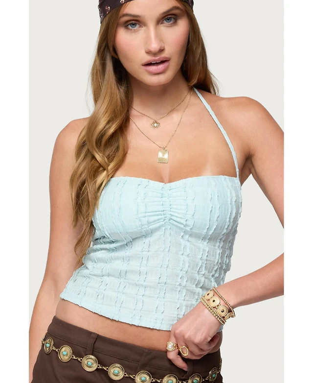 Edikted Womens Textured Iridescent Babydoll Halter Top
