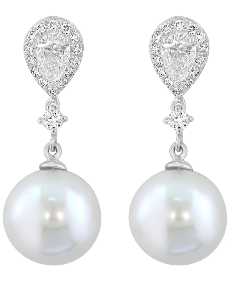 Making a bold and beautiful statement, these Effy Collection earrings pair a large freshwater pearl with lab-grown diamonds. The sterling silver setting provides a cool, modern contrast to the warm pearl.