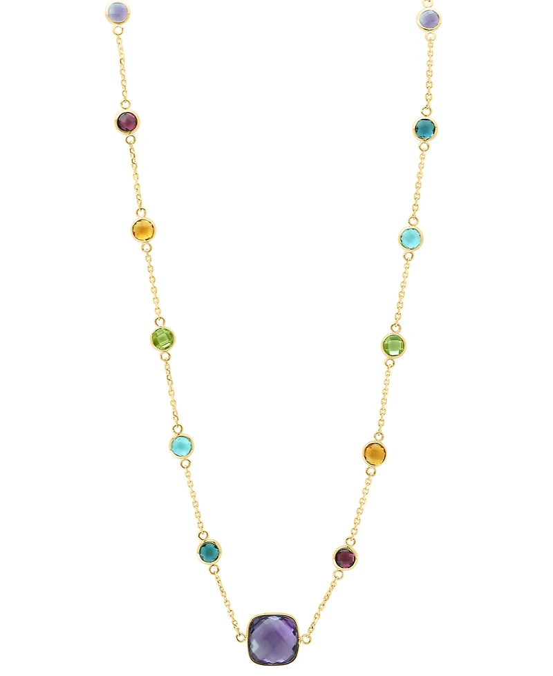 Colorful gemstone variety animates this Effy Collection necklace, combining amethyst, blue topaz, citrine, rhodolite, and peridot. Vibrant arrangement introduces dimensional brilliance, while a lobster clasp secures closure.