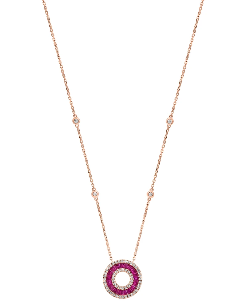 Effy Collection Ruby (1-1/8 ct. t.w.) & Diamond (3/8 ct. t.w.) Pendant Necklace in 14k Rose Gold