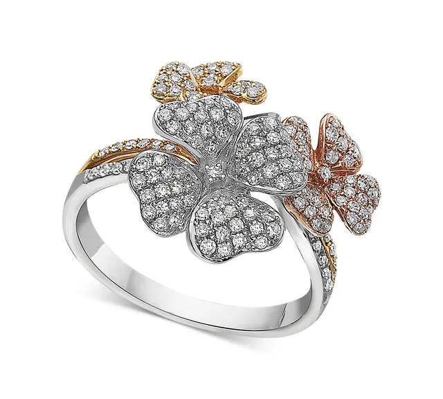 Effy Diamond Tri-Tone Flower Ring in 14k Gold (5/8 ct. t.w.)