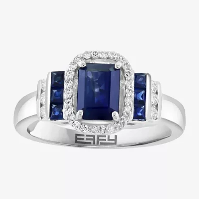 Effy Final Call Womens 1/7 CT. T.W. Lab Created Blue Sapphire 14K White Gold Cocktail Ring