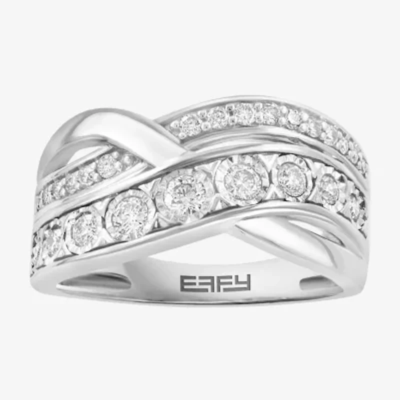 Effy Final Call Womens 2.5MM 1/2 CT. T.W. Natural White Diamond Sterling Silver Crossover Band