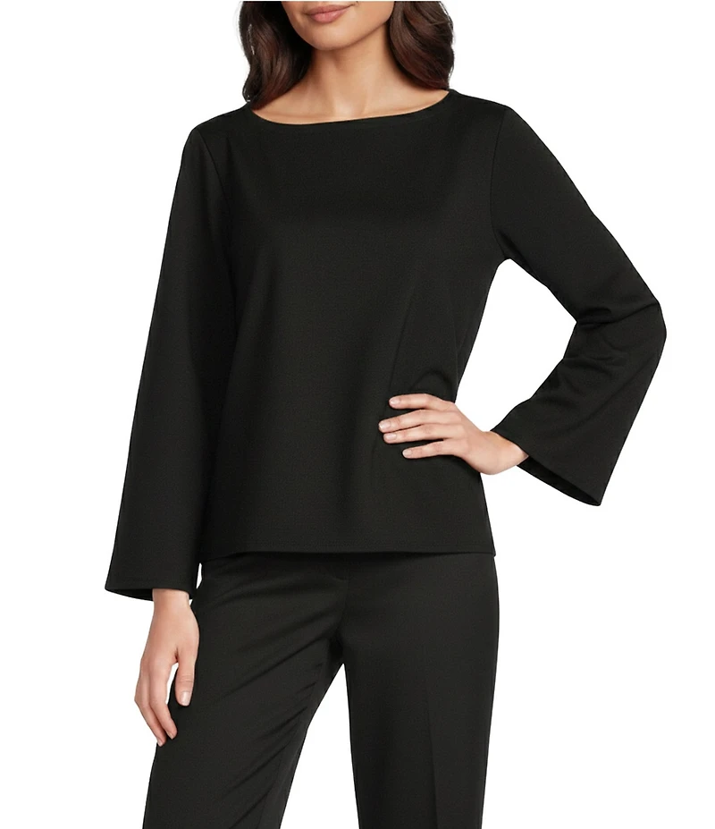 Eileen Fisher Lightweight Ponte Bateau Neck Flared Bracelet Long Sleeve Top
