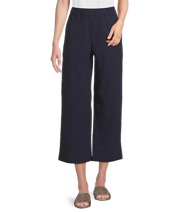 Eileen Fisher Plus Size Organic Cotton Blend Yarn-Dyed Stripe Elastic Waist Wide Crop Pants