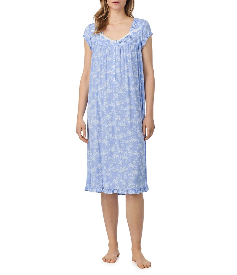 From Eileen West, this nightgown features: Floral print Jersey knit fabrication Sweetheart neckline Cap sleeves Partial button front closure Ruffle hem Pullover construction Approx. 42" length Modal/spandex Machine wash cold/tumble dry low Imported.
