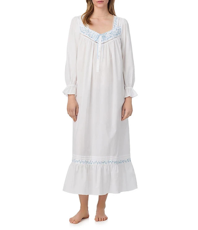 Eileen West Long Sleeve Sweetheart Neck Woven Cotton Ballet Nightgown