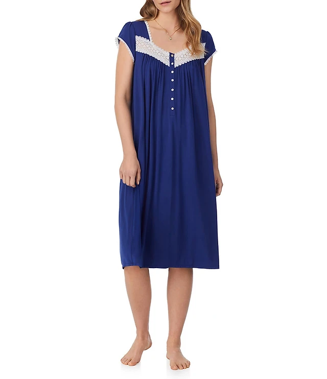 Eileen West Cap Sleeve Sweetheart Neck Wavy Pointelle Waltz Nightgown