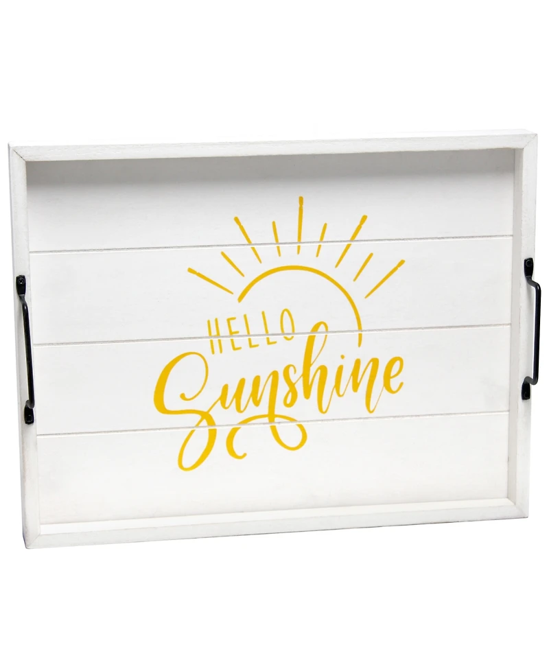Freshen up your home with this wooden tray, accented with black metal handles. This tray is on trend to give your home that cozy farmhouse feel. Use to serve breakfast in bed, party drinks, food or make a centerpiece for your dining-coffee table, kitchen counter or ottoman.