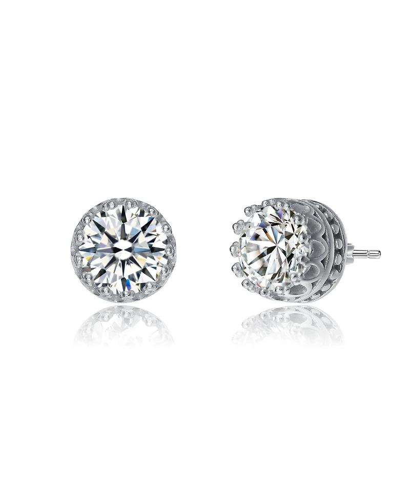 Elegant Sterling Silver Royal Princess Round Stud Earrings