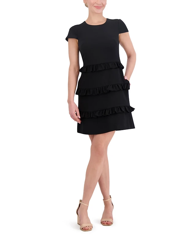 Eliza J Petite Short-Sleeve Jewel Neck Dress