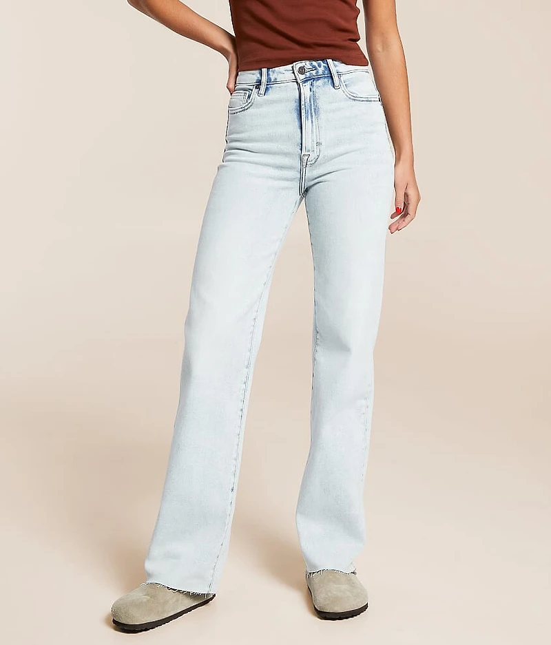 High rise Slightly eased through the hip and thigh 16" bottom opening Comfort waistband Frayed hem details