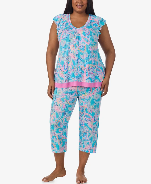 Ellen Tracy Plus Cap-Sleeve Top and Cropped Pajama Pants, 2-Piece Set