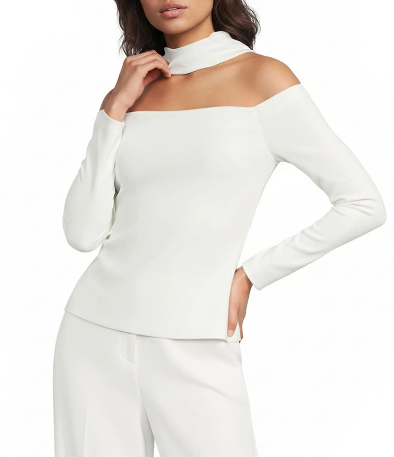 From ELLIATT, this top features: Stretch crepe fabrication Off-the-shoulder neckline Long sleeves Silk neck tie detail Straight hem Back zip closure Approx. 23" length Polyester/spandex' lining: polyester/spandex Dry clean Imported.