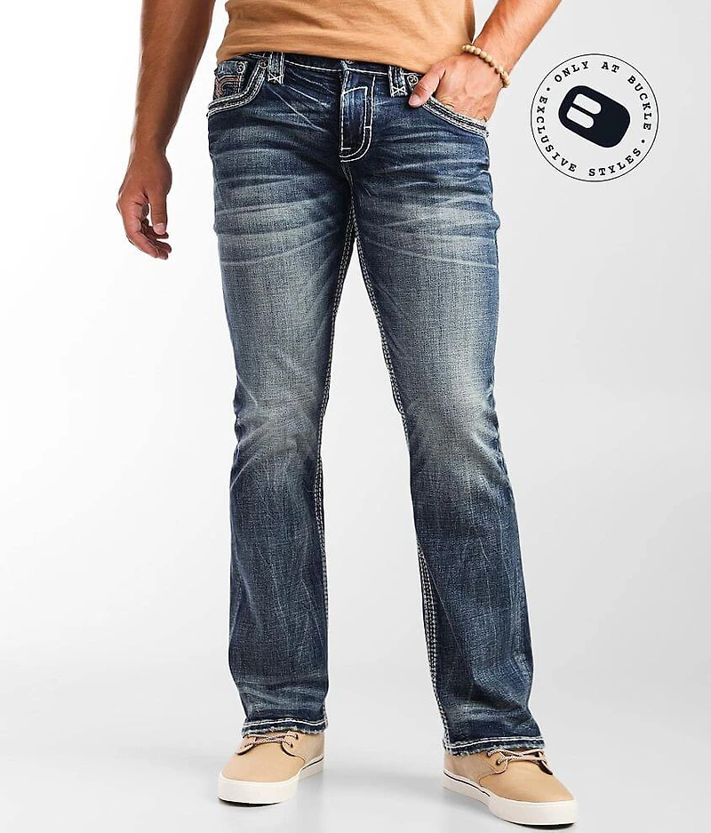 Slim fit bootcut jean Comfort stretch fabric Low rise, 19" bottom opening Embroidered faux flap back pockets Hand sanding, whiskering, veining, and grinding details Zip fly Shoe sku 959031 Model Info: Height: 6'2" | Chest: 36 1/2" | Waist: 34 1/2" | Hip: 41 1/2" | Wearing Size: 32x32