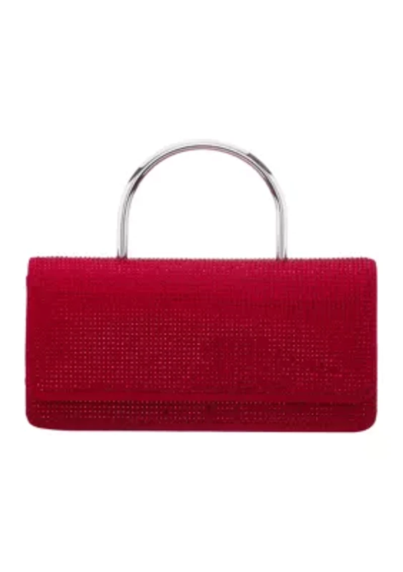 Shine in style with this elongated satchel from Nina, fully adorned with crystals and finished with a sleek flap for a glamorous, statement-making look. Top handle with 2.75" drop Removable strap Interior: 1 slip pocket Imported Product Specifications 8.75" L x 4.5" H x 2.5" D Material & Care Plastic Spot clean only