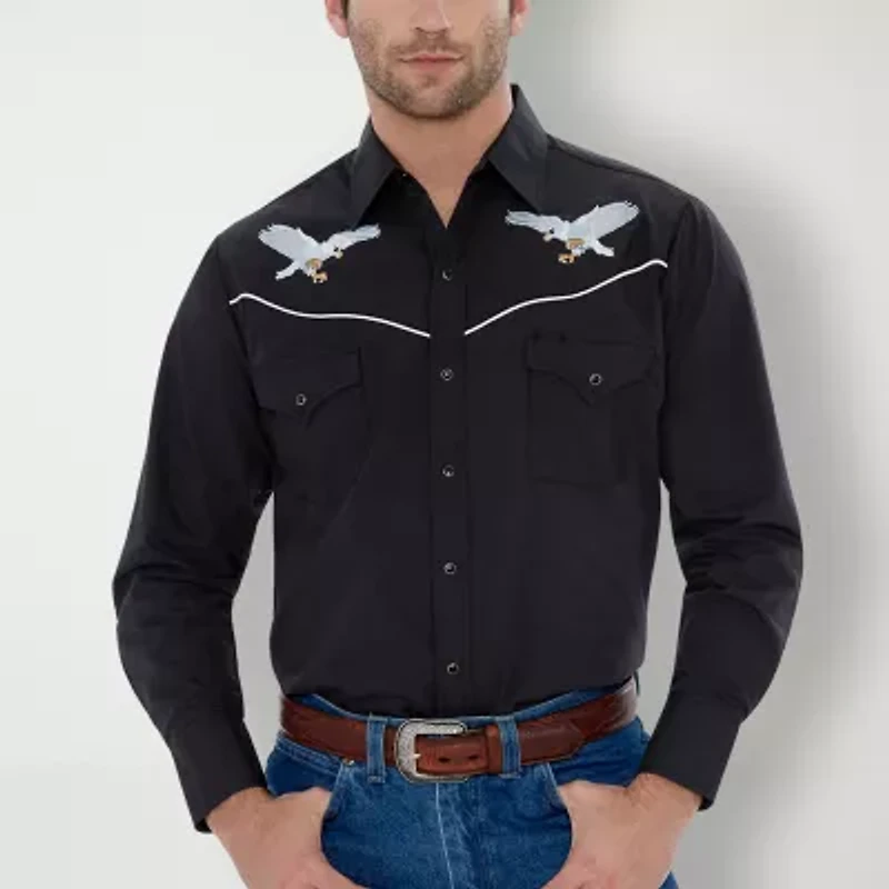 Embroidered with eagles, this traditional western shirt lets you show off your American pride. With contrast piping on the yokes and a classic snap front, this shirt is all-American at its best.