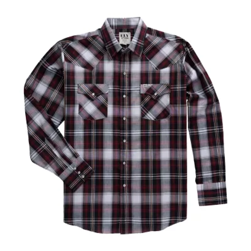 Ely Cattleman Textured Plaid Mens Long Sleeve Western Shirt