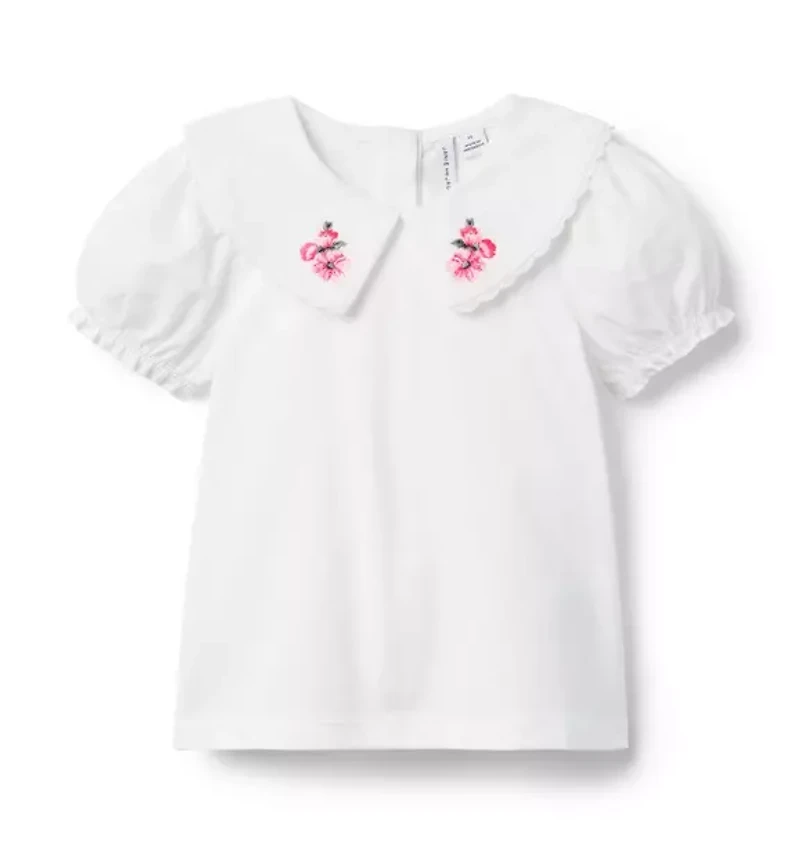 Embroidered Collar Puff Sleeve Top