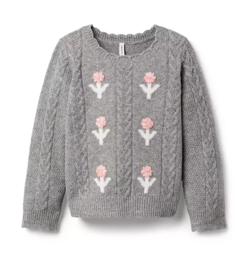 Embroidered Floral Cable Knit Sweater