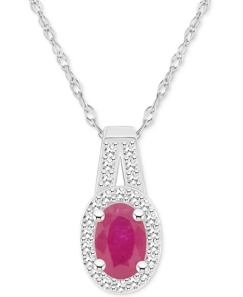 An enchanting oval-cut emerald is enhanced by diamonds in this elegant sterling silver pendant necklace. Also available in ruby and sapphire.