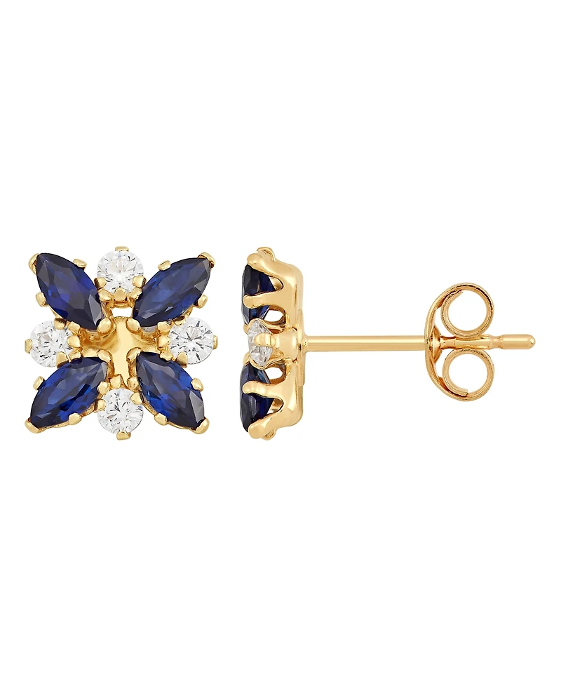 Emerald (3/4 ct. t.w.) & White Topaz (1/3 Flower Stud Earrings 10k Gold