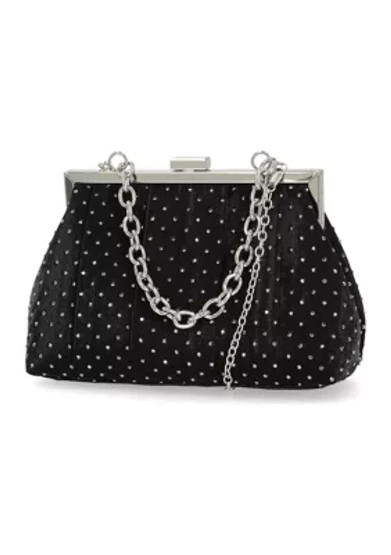 This elegant satin frame bag, the Emmy, is a must-have accessory for the modern woman. Crafted from luxurious satin, it features a spacious interior with a credit card pocket for added convenience. The versatile crossbody strap provides multiple carrying options, making it perfect for any occasion. With its sleek design and functional features, the Emmy is sure to become your go-to bag for everyday style and sophistication. Top handle with 4" drop Crossbody strap with 23" drop Interior: credit card pocket rear wall Imported Product Specifications 8.25" x 6" x 3.5" Material & Care Satin Clean with a soft cloth