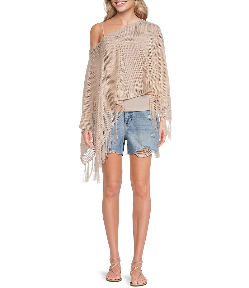 Emory Park Crochet One Shoulder Fringe Hem Poncho