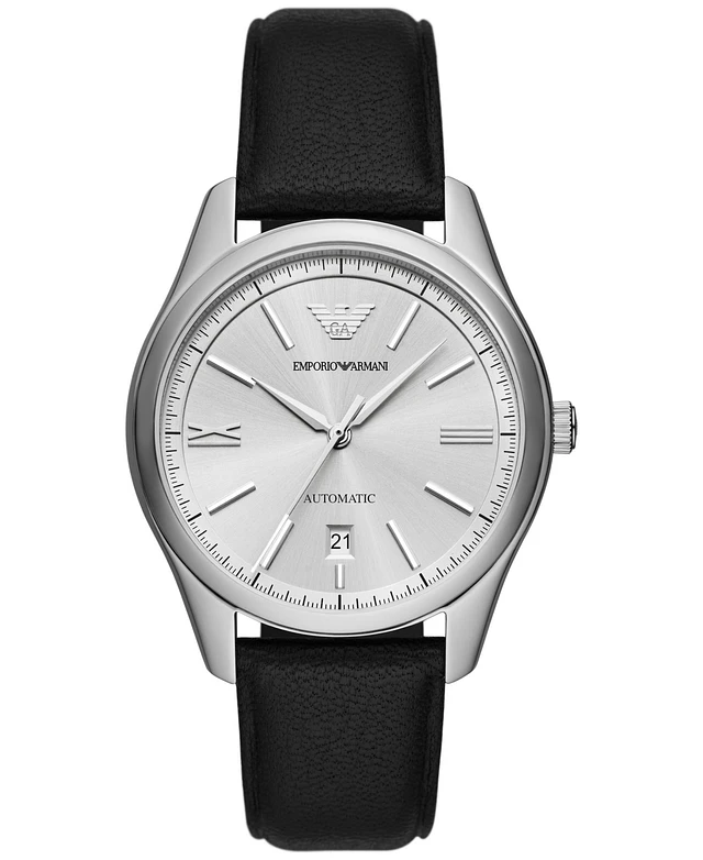 Emporio Armani Men's Automatic Black Leather Strap Watch 41mm