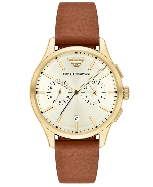 Emporio Armani Men's Chronograph Brown Leather Watch, 42mm