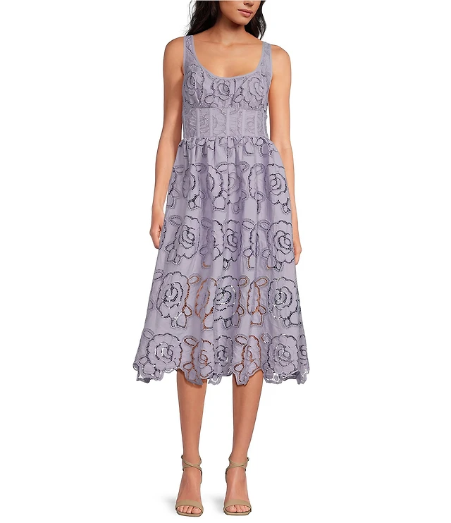 En Saison Brynlee Embroidery Scoop Neck Sleeveless Midi Dress