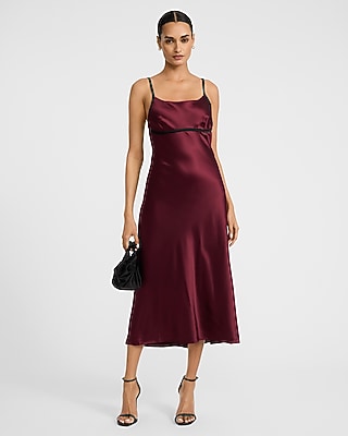 Satin Tipped Scoop Neck Sleeveless Midi Dress