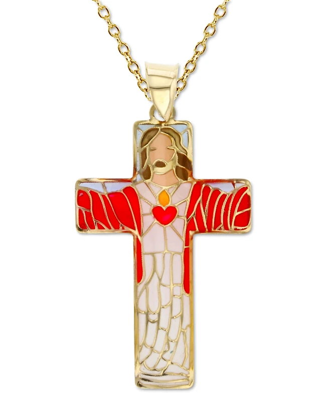 Enamel Jesus Cross 18" Pendant Necklace in 14k Gold