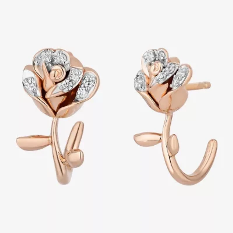Enchanted Disney Fine Jewelry Belle (I,I2) 1/8 CT. T.W. Lab Grown White Diamond 14K Rose Gold Over Silver 12.8mm Flower Beauty and the Beast Belle Stud Earrings in Franklin, TN